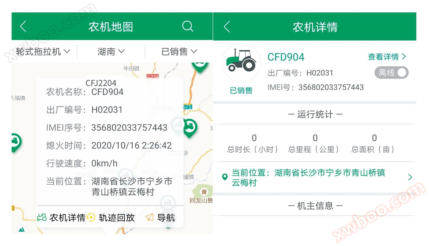 Driving trajectory: Real time recording of the historical trajectory of agricultural machinery driving, assisting users in calculating the operating area.
