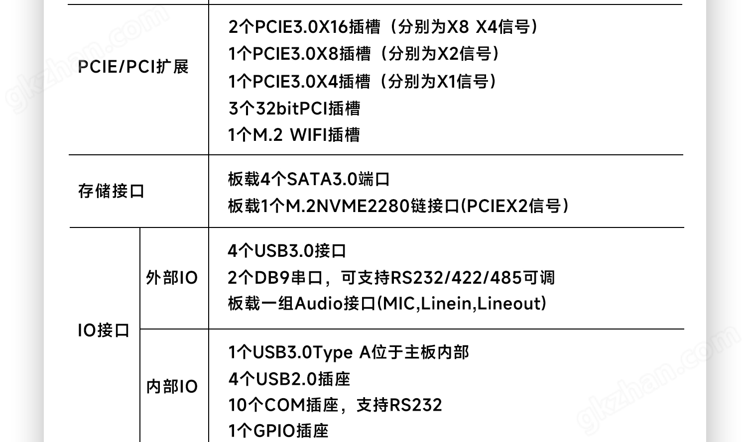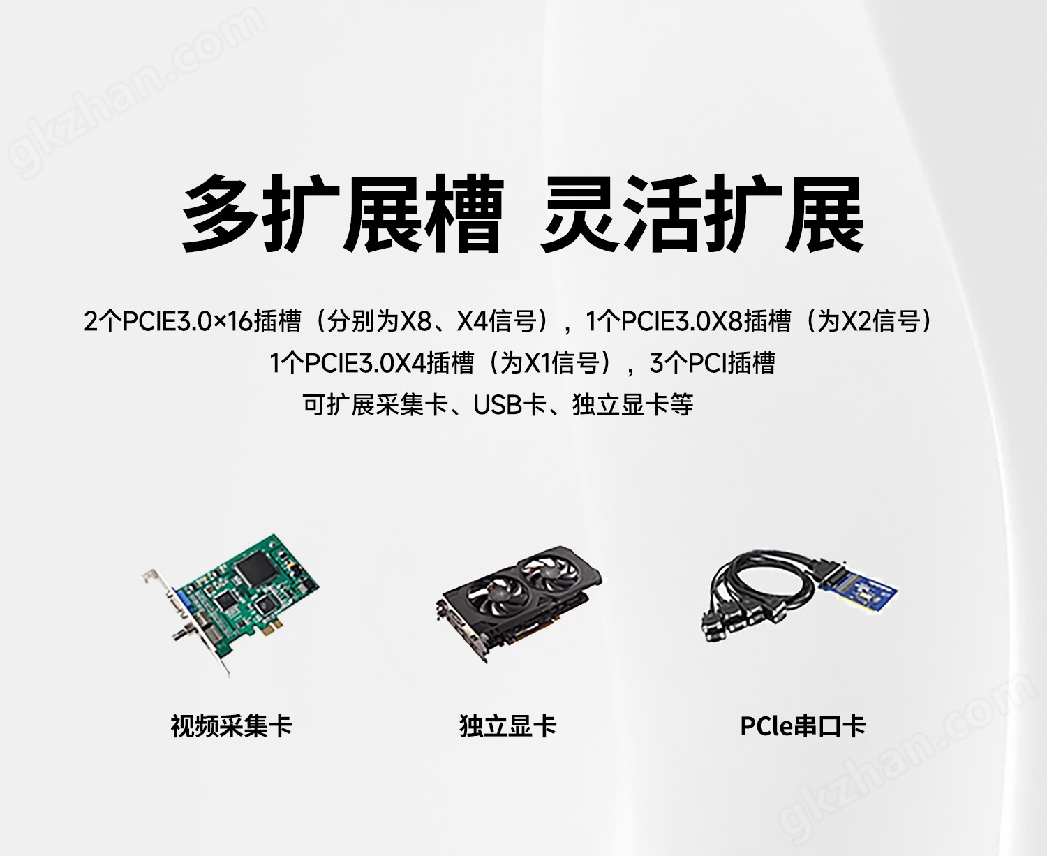 Mega core KX-7000 processor4 DDR5 memory slots, up to 128GB• VGA、HDMI、DP、LVDS, Support simultaneous output of four displays and any three displays4 PCIE slots, 3 PCI slots2 RJ45 Gigabit Ethernet ports