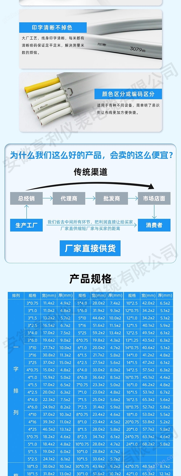 Multi core ZA-YVFGRPB flame retardant flat cable 3 * 60mm specification