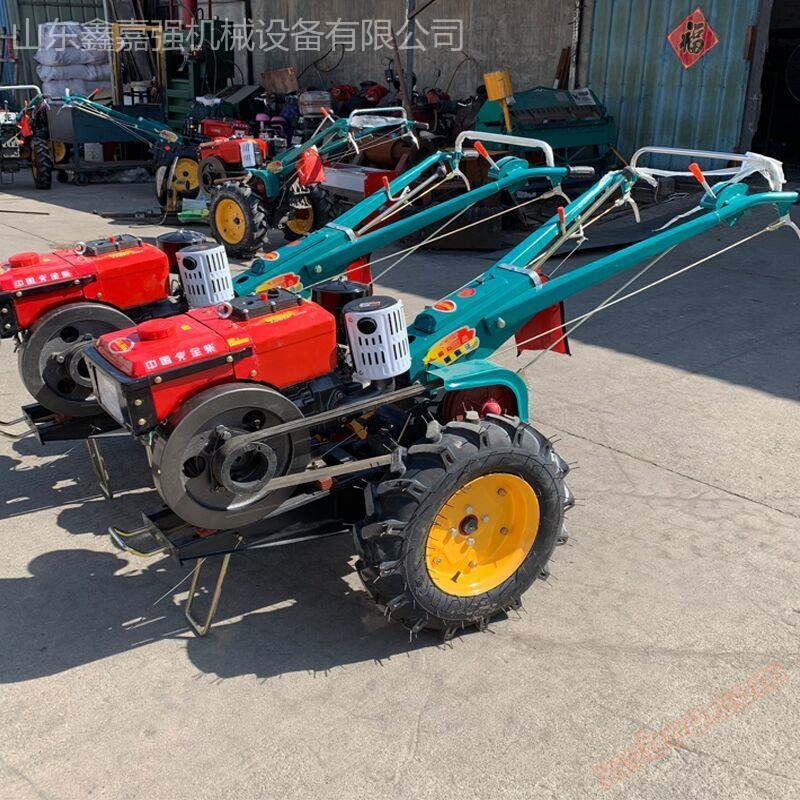 The walking tractor can travel by relying on the power of the internal combustion engine through the transmission system, obtaining driving torque from the driving wheels, and then applying a small, backward horizontal force (tangential force) to the ground through the tire tread and tire surface. This reaction force is the driving force (also known as positional thrust) that pushes the tractor forward. Simple structure, low power, suitable for small plots of farmland. The driver supports the armrest to control the operating mechanism, tow or drive the supporting agricultural tools for operation.