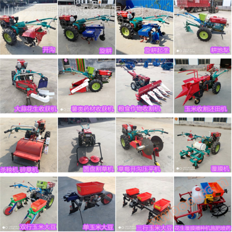 The advantages of a hand-held tractor are that, when equipped with different agricultural machinery, it can perform various field operations such as rotary tillage, soil loosening, trenching, ridge formation, sowing, fertilization, spraying and film covering, leveling, and soil crushing. With a trailer, it can also be used for short distance transportation.