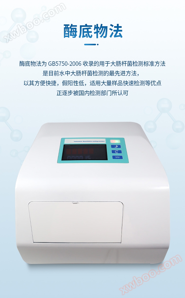 The enzyme substrate method is a standard method for detecting Escherichia coli included in GB5750-2006. It is currently the most advanced method for detecting Escherichia coli in water, and is gradually being recognized by domestic testing departments for its convenience, speed, low false positives, and suitability for rapid detection of large amounts of samples.