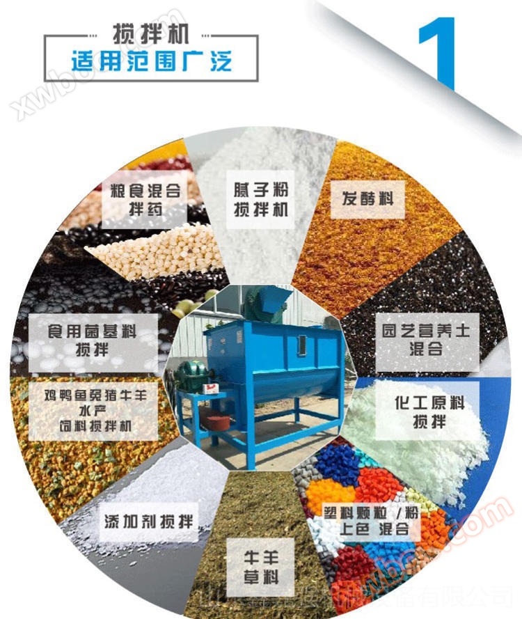 The new generation of mixing and stirring equipment has a compact structure, beautiful appearance, stable performance, low noise, and no dust. It is a fast, energy-saving, and high-quality mixing equipment. A small-scale compound feed processing equipment designed specifically for breeders, small-scale breeding farms, and small to medium-sized compound feed factories. It has the advantages of simple and compact structure, one-time small investment, economic practicality, easy maintenance, and no need for special production sites; It can mix materials evenly inside the machine and produce premix, concentrate, full price powder, etc.