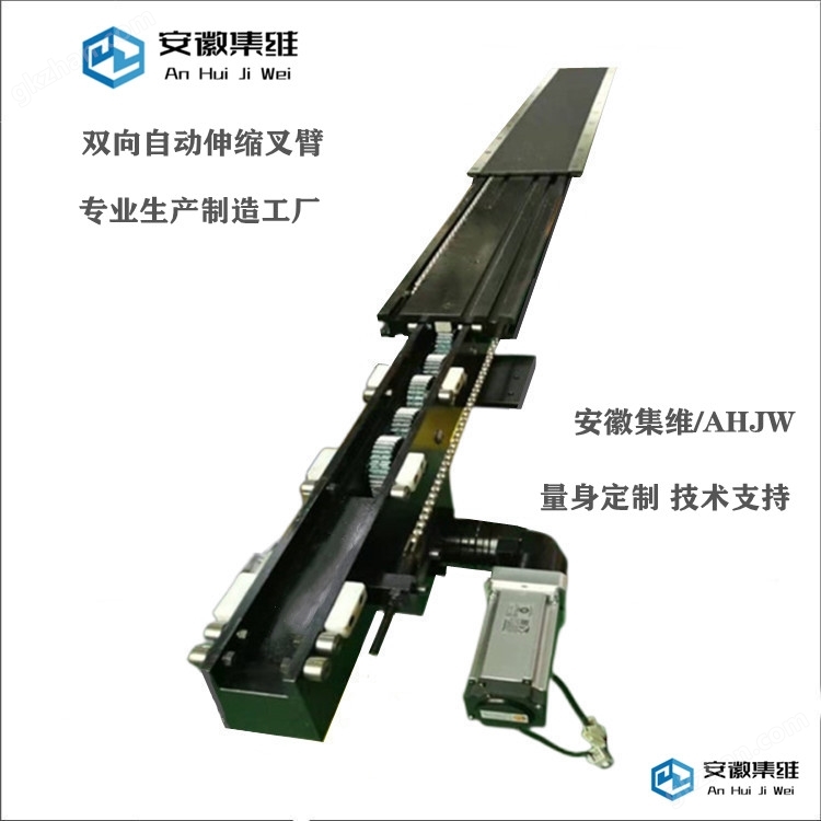 Auxiliary componentsIncluding guide rollers and guide sliders to reduce friction during fork expansion and contraction; Gears, racks, sprockets, and chains are responsible for power transmission; At the same time, it is equipped with limit switches, center switches to control the telescopic stroke, torque limiters, encoders to ensure safe operation and positioning accuracy, and driving components such as motors and reducers to achieve stable operation.